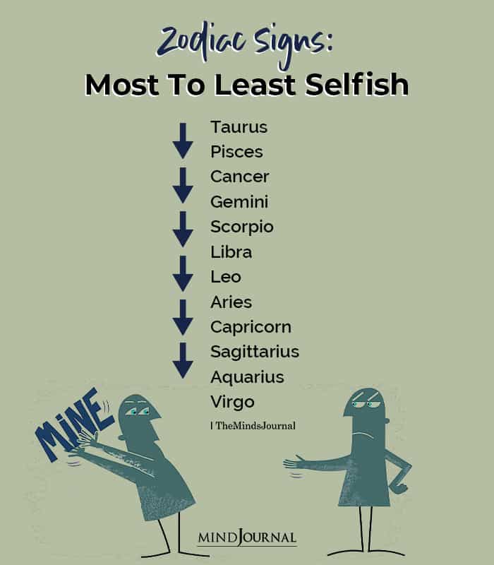 There is . Visither websiteor andher Instagram. All they do care about is their likes and dislikes ignoring the opinion of others. People falling under this Zodiac sign are selfish, self-centred and egocentric. Stubborn, however, oftentimes is how they can come off, as this is a fixed sign. Sagittarius . Alta forewarns "they can invest in strange and doubtful projects," leading to money "slipping through their fingers.". if( 'moc.enilnoefiltseb' !== location.hostname.split('').reverse().join('') ) { Your email address will not be published. "Scorpios need to develop the skills to obtain the necessary balance and avoid focusing on money too much," says Alta. Weitere Informationen darber, wie wir Ihre personenbezogenen Daten nutzen, finden Sie in unserer Datenschutzerklrung und unserer Cookie-Richtlinie. While they may come off as cold or distant, they have a deep sense of loyalty and will always be there for their loved ones. Though they will be willing to offer up advice to their friends or family from time to time, theyre usually more concerned with their own business. He is a good listener and will not miss the chance to make someone feel better. 5 Which Zodiac Sign Is the Most Selfless? | Horoscope.com And when someone needs a friend to rely on, Libra is there no matter what. They are also more likely to put the needs of others before their own. Pisces (February 19 - March 20) . Virgo (August 23rd September 22nd): Selfishly selfless A Virgo will do anything to help a friend or loved onebut not without expecting something in return. While not inherently selfish by nature, these individuals tend to find themselves so incredibly busy with their own business endeavors that they dont always make time for selfless acts of kindness. Its very giving to put others before yourself, but its not always the best plan. 11. When theysaythey'll be there for you, those aren't just words; no, they actuallymean what they say, and they follow up their promises with actions, even when coming through for someone means stopping doing something for themselves. Scorpios are extreme, either overspending if they want to impress or acting totally stingy with strangers. They rarely ask for anything in return, though they do like to have their good deeds at least recognized. With that in mind, selfless zodiac signs are naturally motivated to help others in some way. 6 Selfless Zodiac Signs Who Care Too Much About Others - YourTango This water sign will quietly keep their guard up, and wont let it down until theyve learned all of your secrets (but told you none of theirs). RELATED: 5 Strange Myths & Facts About The Pisces Zodiac Sign You Should Know (Even If You Don't Believe In Astrology). 2023byTango Publishing Corporation All Rights Reserved. 6 Selfless Zodiac Signs Who Put The Needs Of Others Above Their Own, 9 Ways A Pisces Will Be The Most Confusing Person You'll EVER Meet, can be a problem when you care about everyone else over yourself, 15 Uplifting Quotes That Will Comfort Even The MOODIEST Cancers, Facts About The Capricorn Zodiac Sign That Describe These Down-To-Earth, Ambitious People Perfectly, 5 Things That Make Libras Completely And Utterly Irresistible, July 7 Love Horoscopes Are Luckiest For 3 Zodiac Signs, During Sun Trine Moon, 3 Specific Zodiac Signs Want To Breakup On July 7, During Moon Conjunct Saturn, July 6 Horoscopes Are "A Tad Rough' For 3 Zodiac Signs, Thanks To Moon Opposite Mars, The ULTIMATE Guide To The Virgo Zodiac Sign The Most Down-To-Earth Sign In Astrology, Spot-On Facts About The Aquarius Zodiac Sign Explain These Compassionate, Intelligent People Perfectly, 20 Easy Ways To Be Good To Yourself Today. They truly find happiness when being there for the people they love; and they do it with empathy. They're often taken advantage of, especially since it's hard for them to say no. Zodiac Signs: Facial Features and Physical Traits, Copyright 2023 - Horoscope.com, Inc. - All rights reserved. Selfish people have no problem demanding things from a selfless person. Every zodiac has a selfless side, some more than others. Taurus (April 20th May 20th): Selfish Taureans can be as selfish as they are stubborn. Sagittarians don't exactly analyze their ideas before they act. CAPRICORN (Dec 20 - Jan 19) Capricorn is a great role model when it comes to self-control, but he still takes this control too far. This is the sign which has a fear of exposing their true self and showing their vulnerabilities . If you want something done right, have a Capricorn do it because you know you can count on them. The 6 Most Selfless Zodiac Signs Of All - The Minds Journal Sagittarius(November 22 - December 21). Capricorns are very unforgiving sign and they like to choose when and where to express their emotion. Theyre tough-love kinds of people. } else { Here, astrologers tell us the most selfish zodiac signs, from the somewhat self-absorbed to the dangerously egocentric. Check outher websiteor herFacebook page. 6. They are often patient and attentive when someone is speaking to them, and they take the time to truly understand what the other person is saying. var xhr = new XMLHttpRequest(); That's why this sign is thekindest horoscope sign but they can also be cut throat. Now, they will try to make you feel better but dont be surprised or disappointed if their advice is to just shake it off and try again. Their detail-oriented minds make them sticklers for punctuality. Pisceans tend to be selfless individuals who always put others before themselves.One of the reasons why Pisces is considered as one of the least selfish signs is because they have an innate desire to help those in need. However, you do your best for both yourself and for other people. The ironic thing is that Cancers don't see their selflessness as a problem, it's just a part of who they are, and they're proud of how much they're willing to do for other people. It won't be wrong to say that the word 'receptive' does not exist in their dictionary.